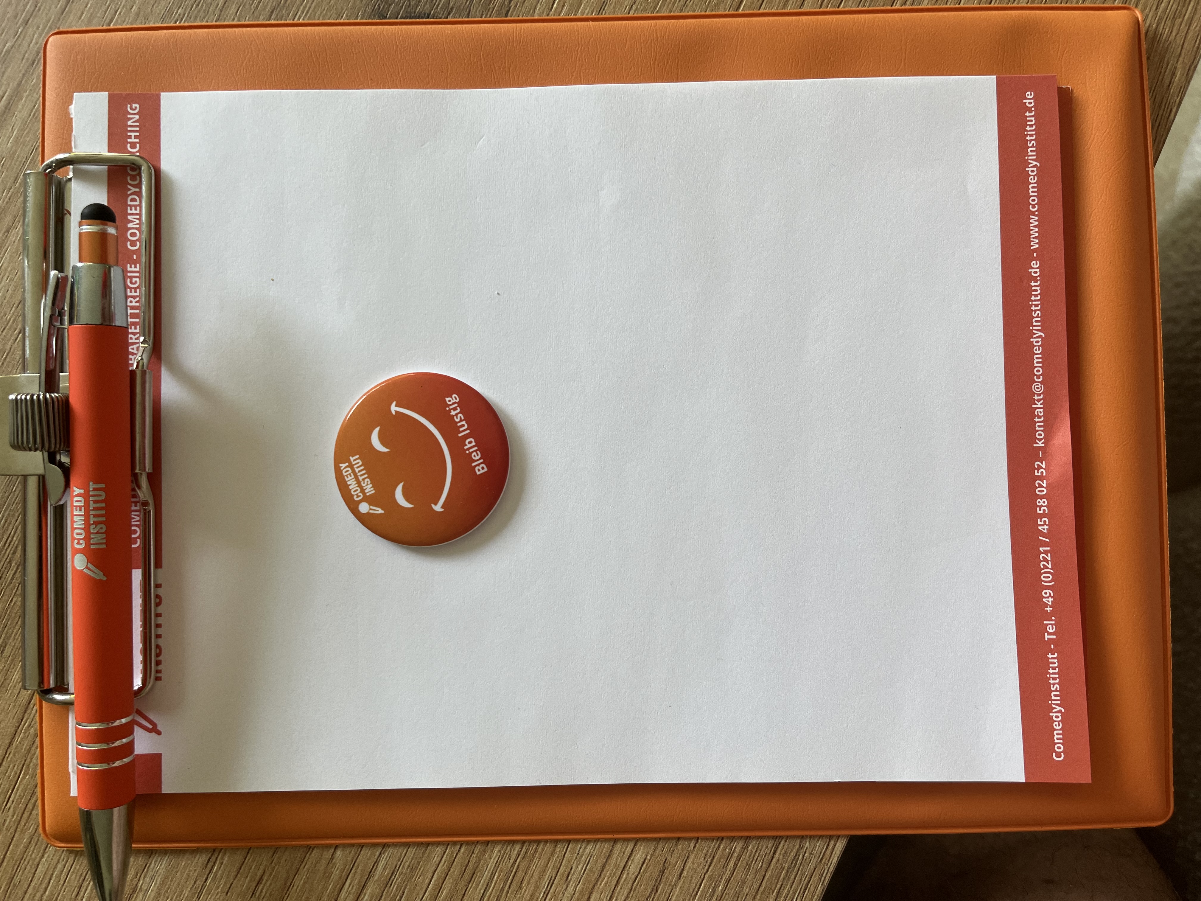 den Spruch "Tumor ist, wenn man trotzdem lacht!" hast du offensichtlich gelebt. Unsere erste Kursübung hat mir dabei geholfen es dir gleich zu tun. Wie finde ich ein Thema für eine Nummer? Schreib die Dinge auf, über die du dich ärgerst und mach was Komisches draus. Auch wenn es manchmal unmöglich erscheint, haben wir doch immer selbst die Macht die Dinge entweder schwarz oder lustig zu betrachten und wir brauchen andere Menschen, die diese Haltung mit uns teilen und leben. Danke!