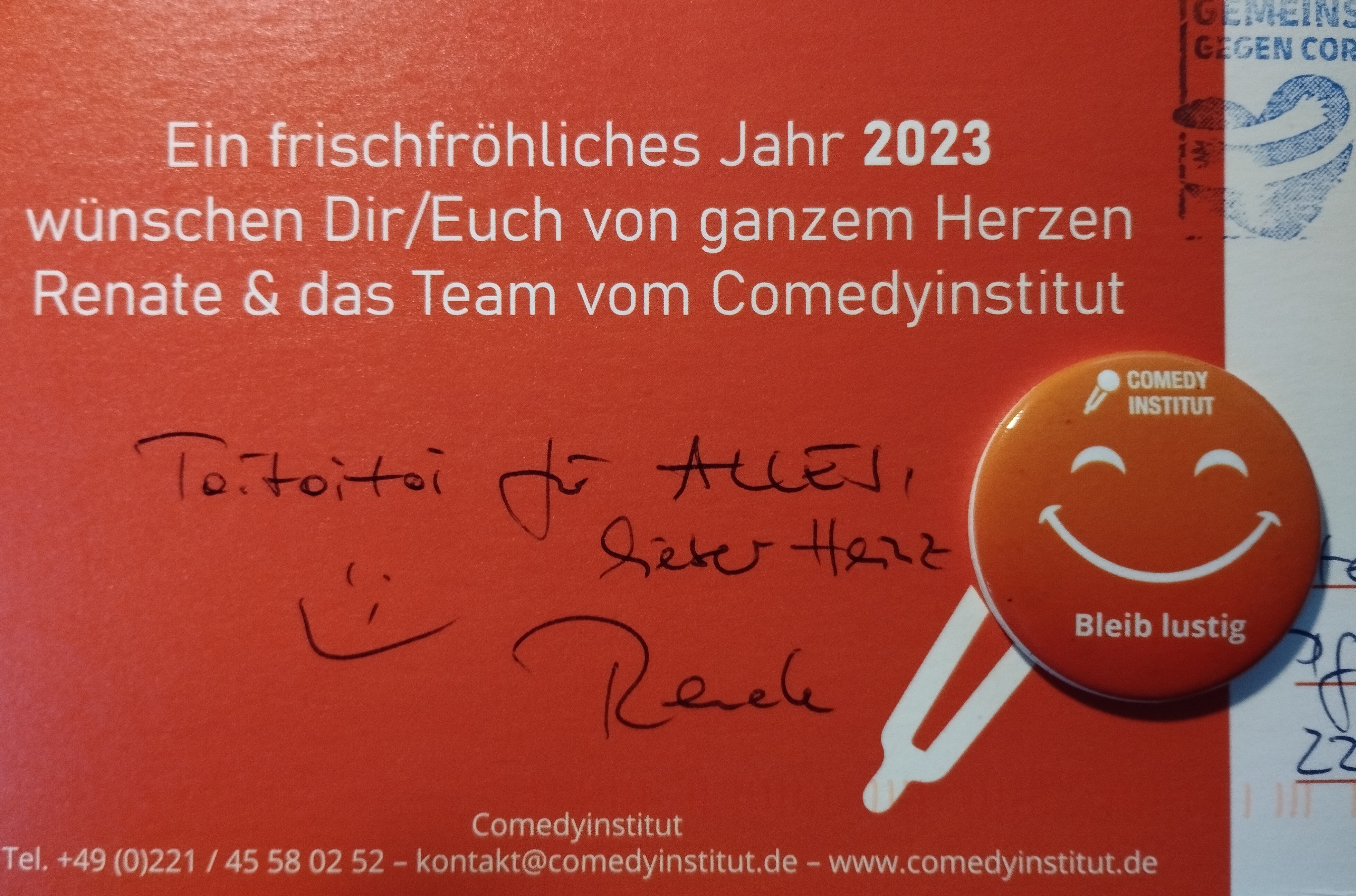 Liebe Angehörigen, liebe Renate, es hat mich gerade wie ein Schlag getroffen, als ich gelesen habe, dass du gegangen bist. Den Kurs, den ich mit dir vor einiger Zeit gemacht habe, ist mir noch ein lebhafte Erinnerung. Ich denke viel darüber nach und habe auch einige deiner Tipps und Ideen für mein eigenes Leben und mein voranschreiten mit dem Humor umgesetzt.